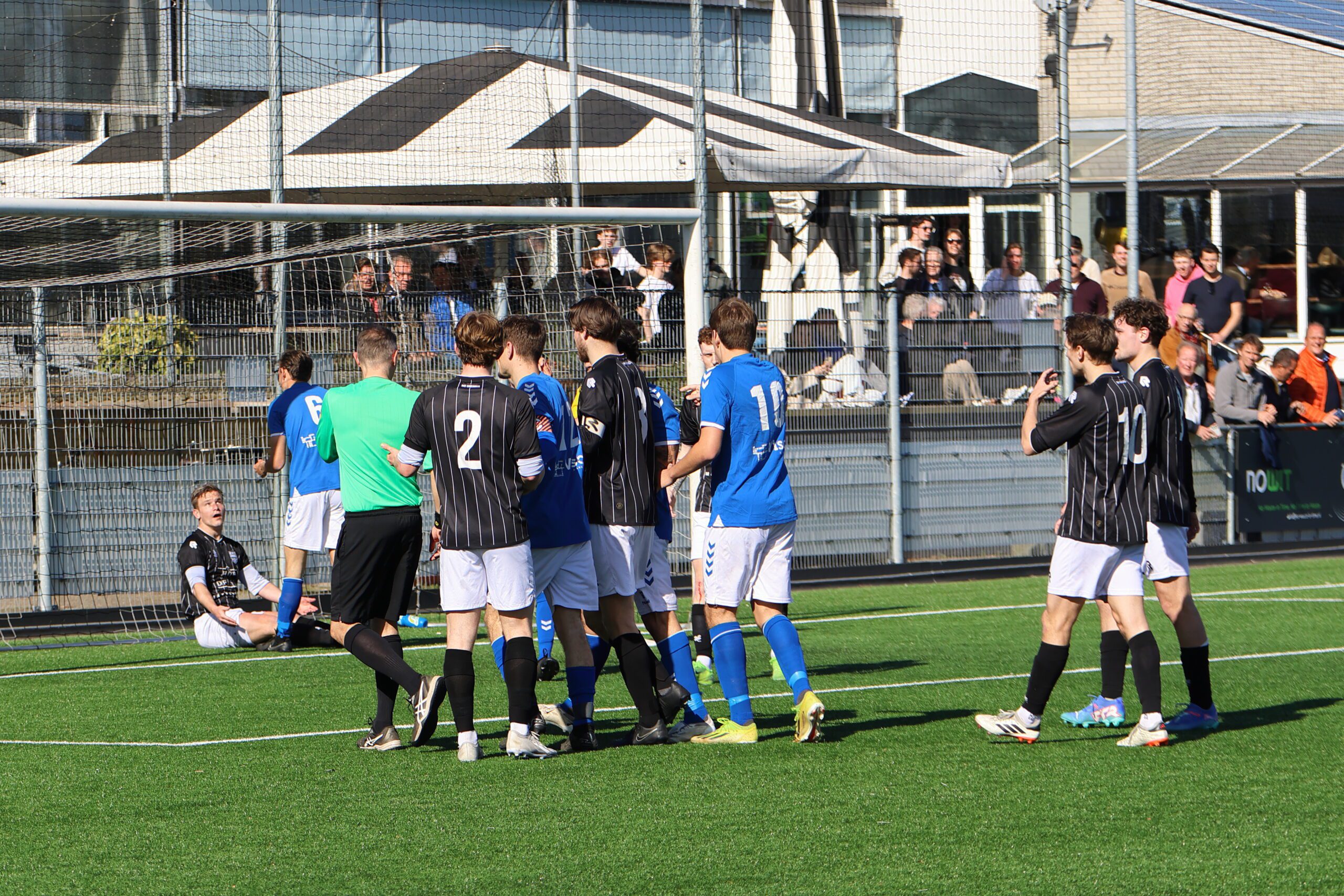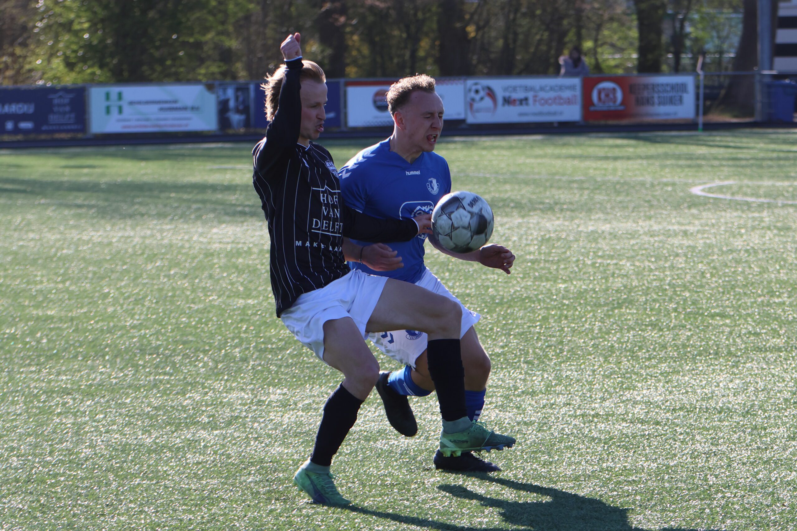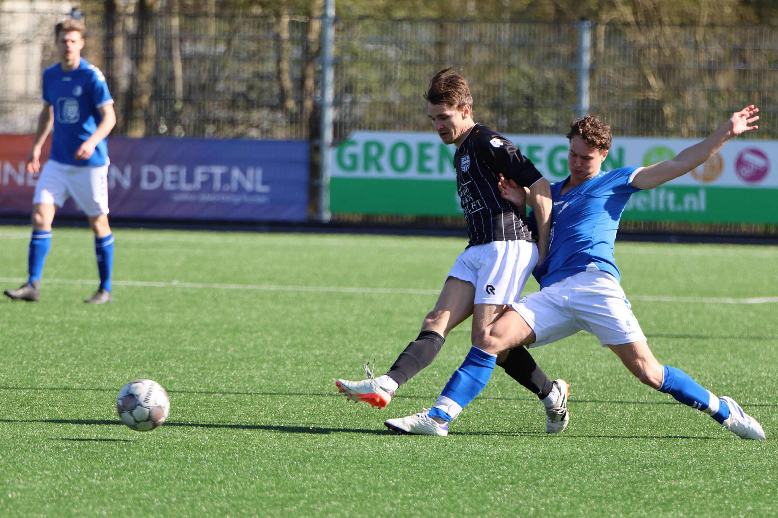 In de eerste tien minuten was Concordia beter en dwong als enige kansen af. Toen een Delftenaar één-op-één richting Wessel Rienstra ging, kon hij met een schuiver in de onderhoek langs Rienstra scoren en zo werd het al snel 1-0. Kort daarna kreeg Loosduinen een penalty mee na een handsbal van een Concordia-speler. De man achter de bal was Peter de Kleer en hij hield zijn hoofd koel door de stand vier minuten na de eerste goal op 1-1 te brengen. De score bleef zich in rap tempo ontwikkelen, want twee minuten na de Loosduinse goal kwam Concordia opnieuw op voorsprong en moest Loosduinen weer van voren af aan beginnen. De neutrale kijker had niets te klagen: drie goals in vijftien minuten zorgden voor een vermakelijke wedstrijd. Een oliedom moment in de Loosduinse achterhoede volgde, toen Wessel Rienstra de bal in zijn handen pakte na een terugspeelbal. De straf daarvoor was een indirecte vrije trap in het zestienmetergebied. Loosduinen was echter scherp en blokte de vrije trap. Het doelpuntenfestijn ging verder: Bart Ruwaard kreeg de bal na een geweldige voorzet van Tico Eckhardt op zijn hoofd en kopte goed binnen, waardoor het 2-2 werd. Meteen daarna kreeg Concordia een penalty mee, waarmee de vijfde goal in 25 minuten kon vallen. Dat gebeurde ook, en de Delftenaren kwamen opnieuw op voorsprong. Rustmomenten waren schaars, want niet veel later werd opnieuw een penalty gegeven. De bal werd met de hand van de lijn gehaald, wat resulteerde in een strafschop en een rode kaart. Damian van der Horst ging achter de bal staan en rondde koelbloedig af, waardoor de stand na dertig minuten al 3-3 was. Loosduinen speelde vanaf dat moment met een man meer, maar toch kwam Concordia voor rust nog op voorsprong. Na een dieptebal werd de verdediging geklopt en wist Concordia opnieuw te scoren. De chaos hield niet op. Dean van Velzen kreeg na een sliding op de bal zijn tweede gele kaart en moest met rood het veld verlaten. Zo stond ook Loosduinen met tien man. Toen was het eindelijk rust en konden de toeschouwers op de tribune even op adem komen.