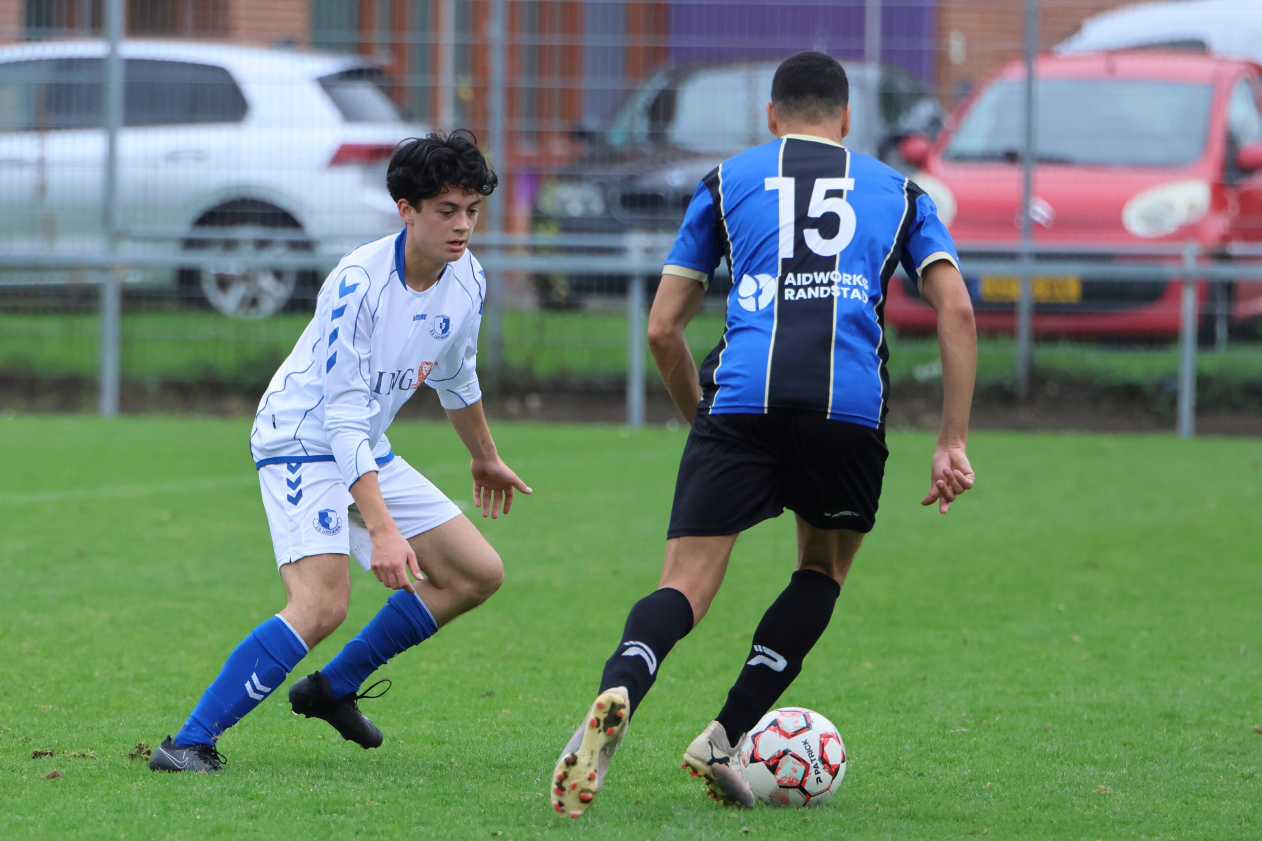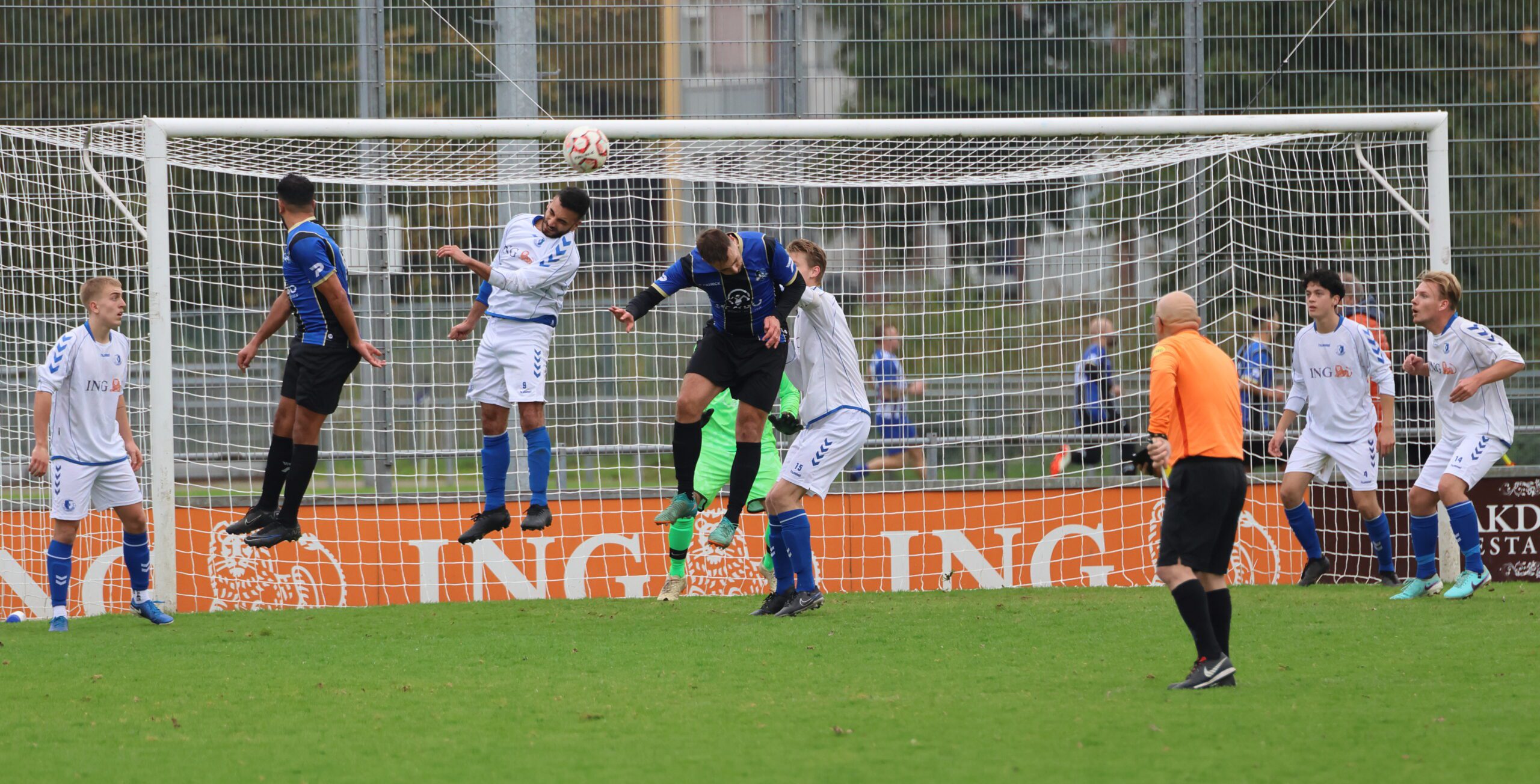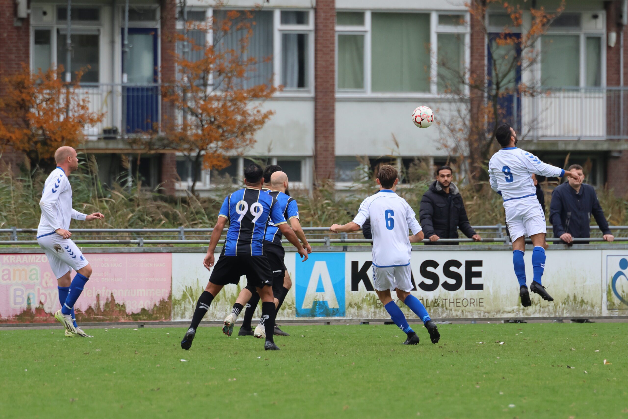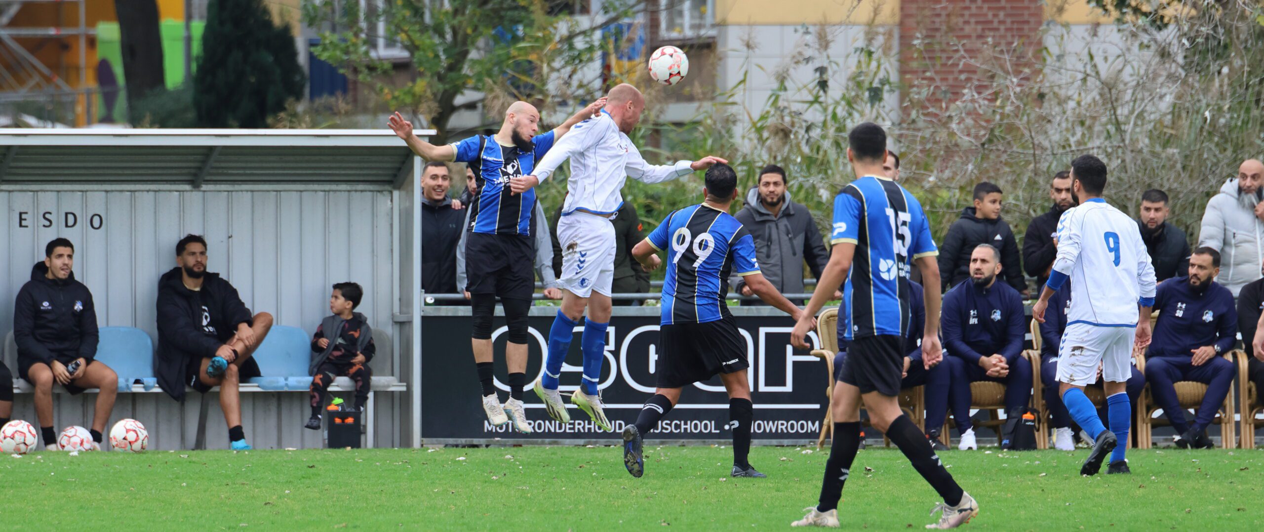 de inlopende spits kon niet richting goal koppen. Loosduinen moest blijven opletten, want even later kreeg Esdo weer een kans, maar de bal werd van dichtbij hoog overgeschoten.