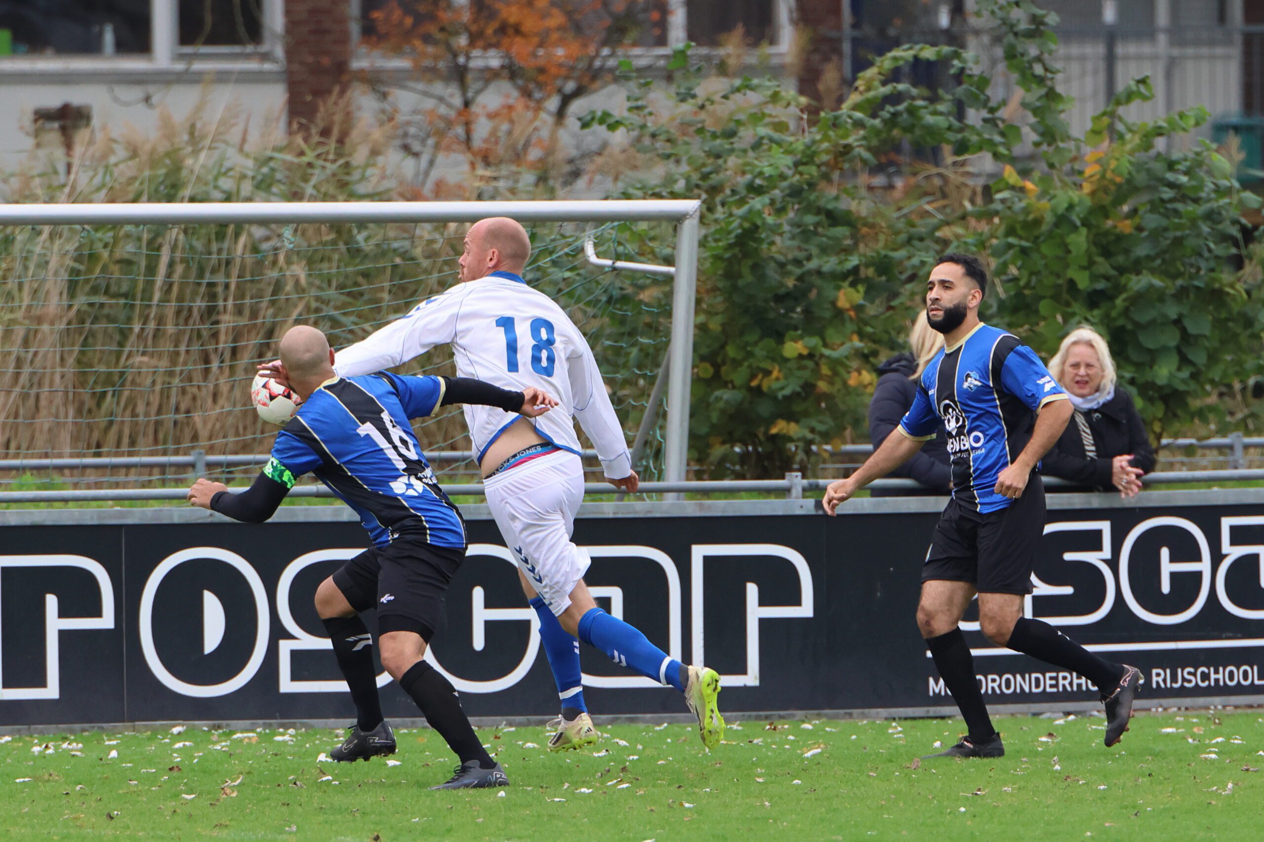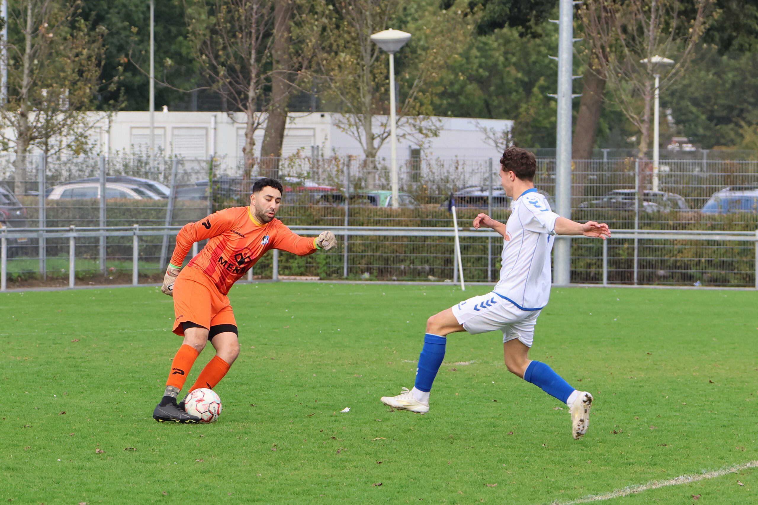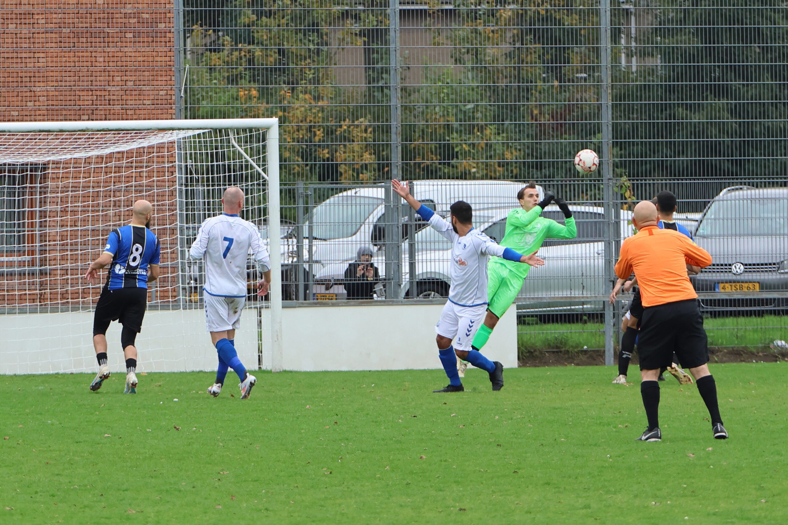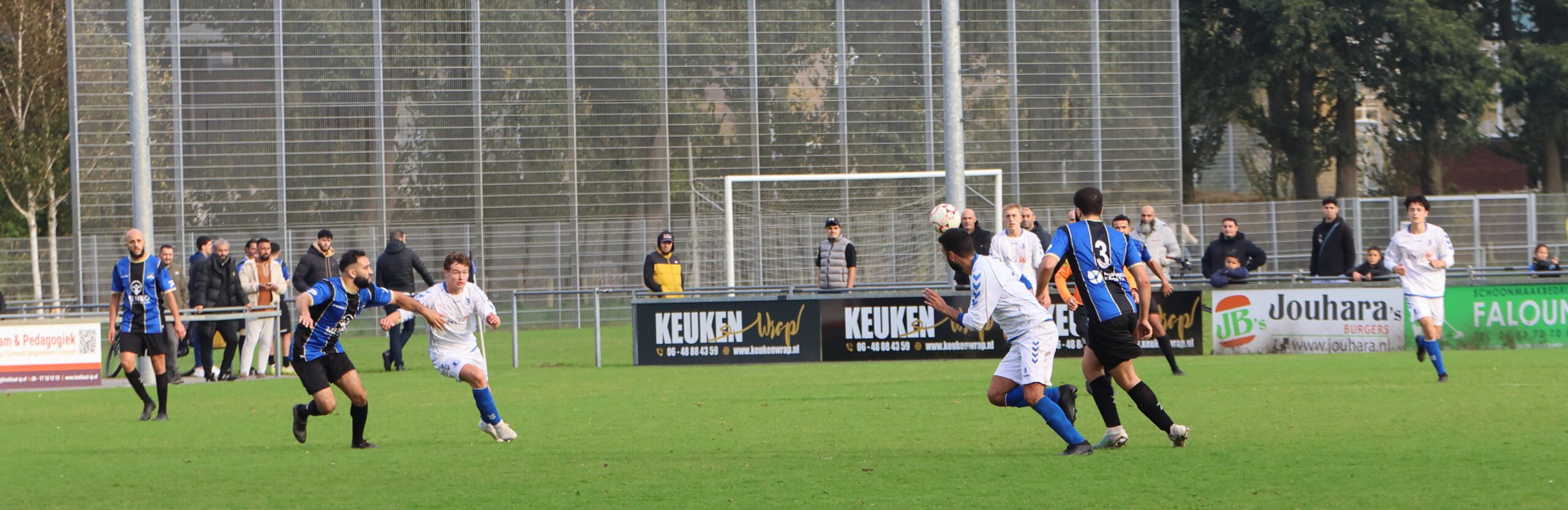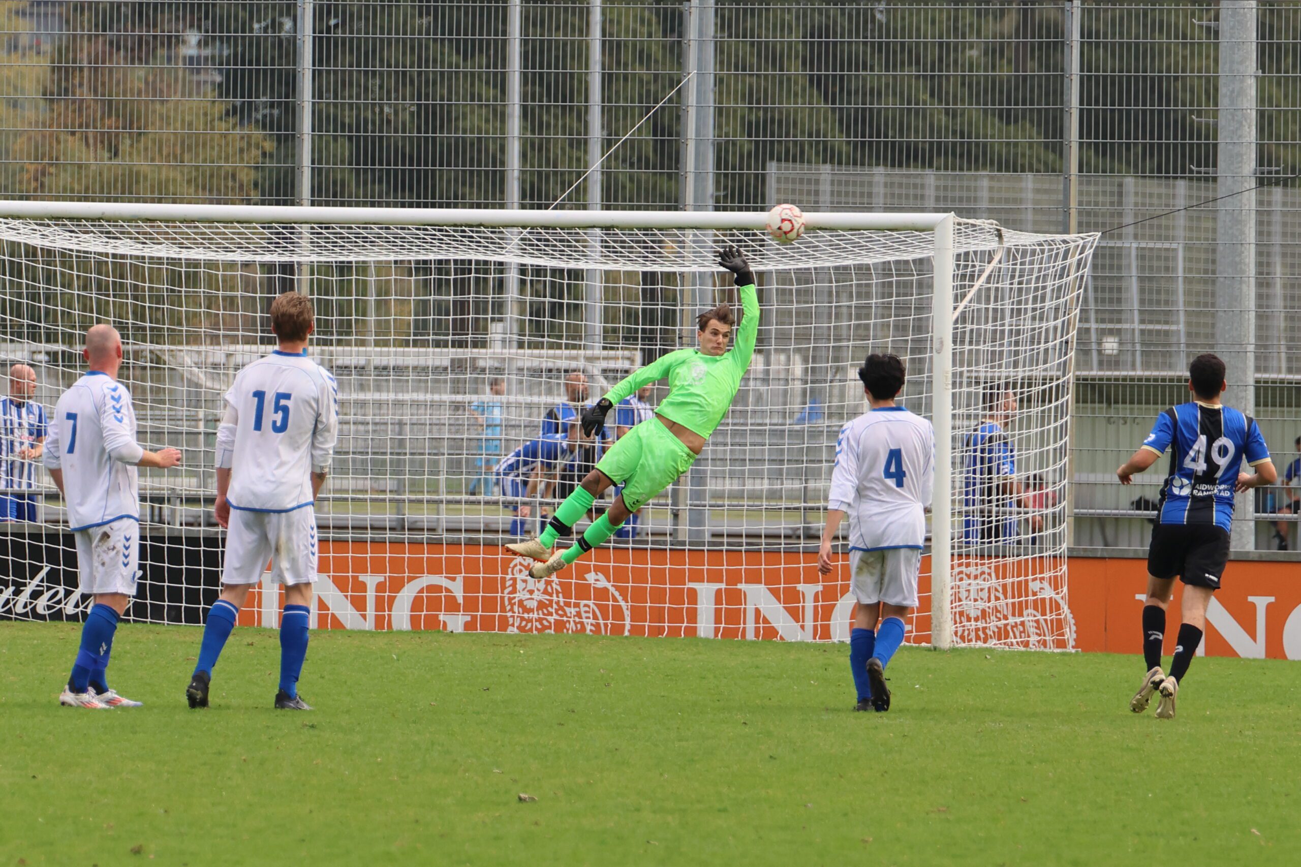 de inlopende spits kon niet richting goal koppen. Loosduinen moest blijven opletten, want even later kreeg Esdo weer een kans, maar de bal werd van dichtbij hoog overgeschoten.