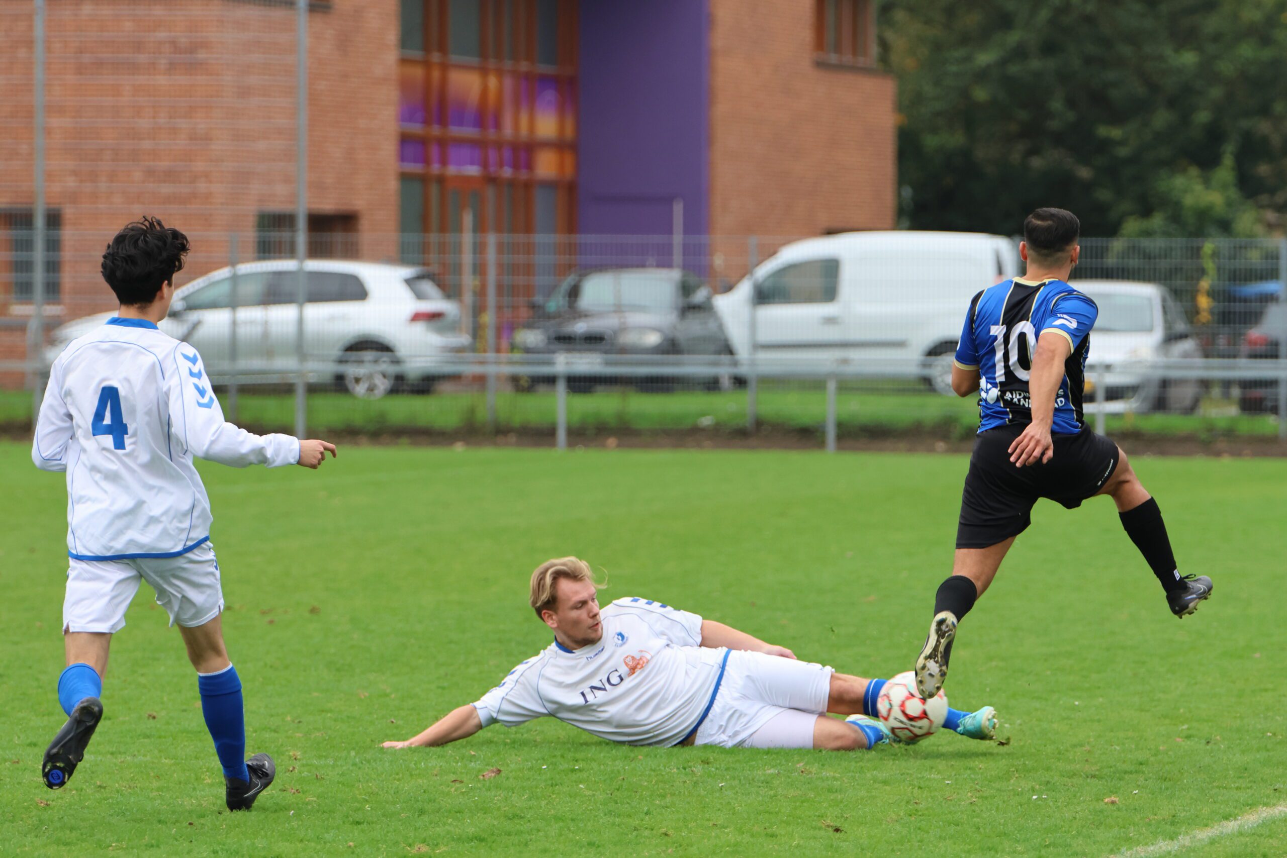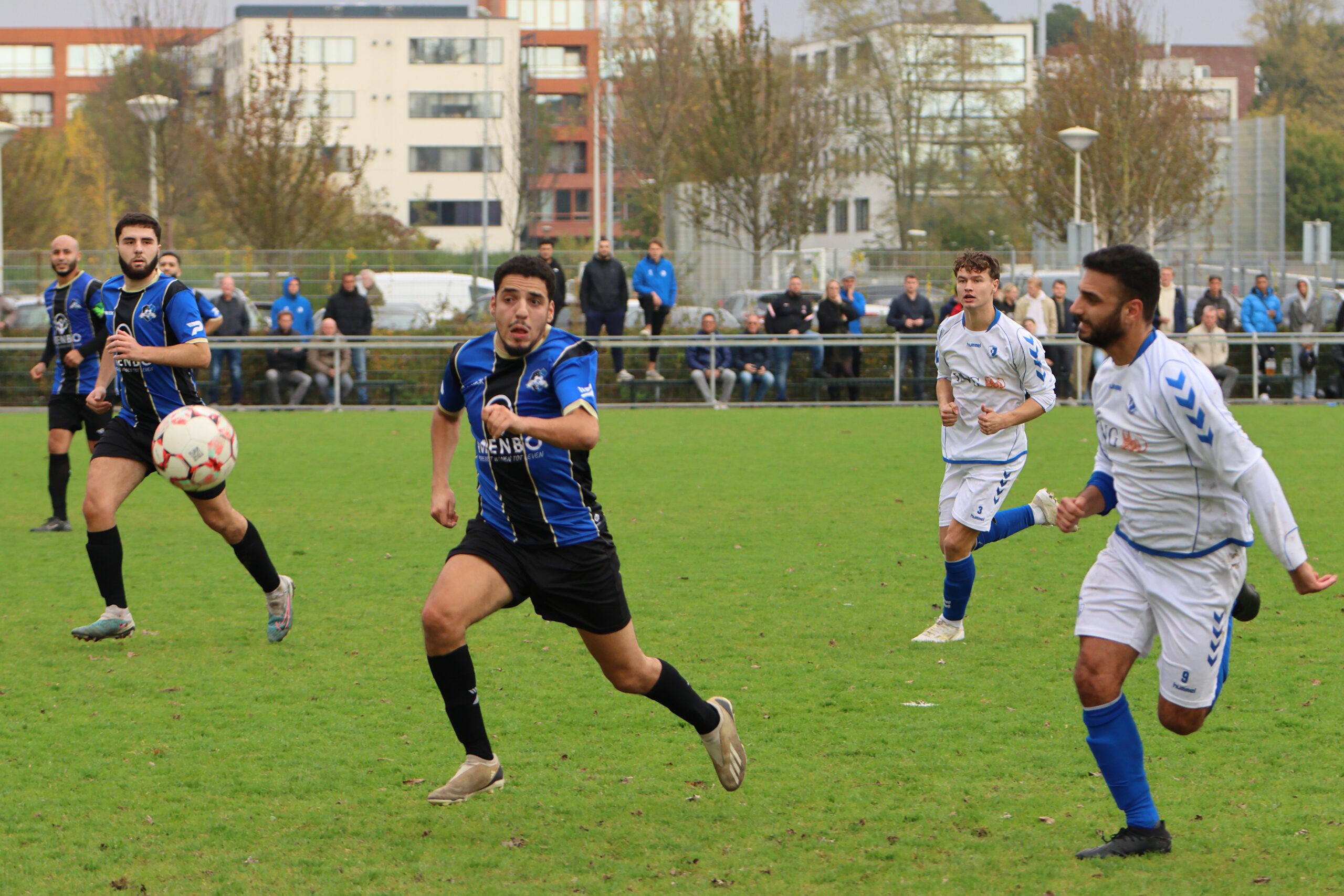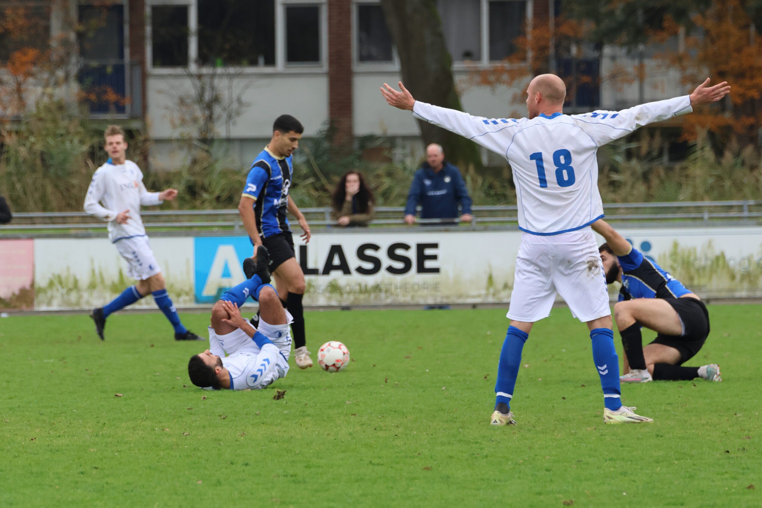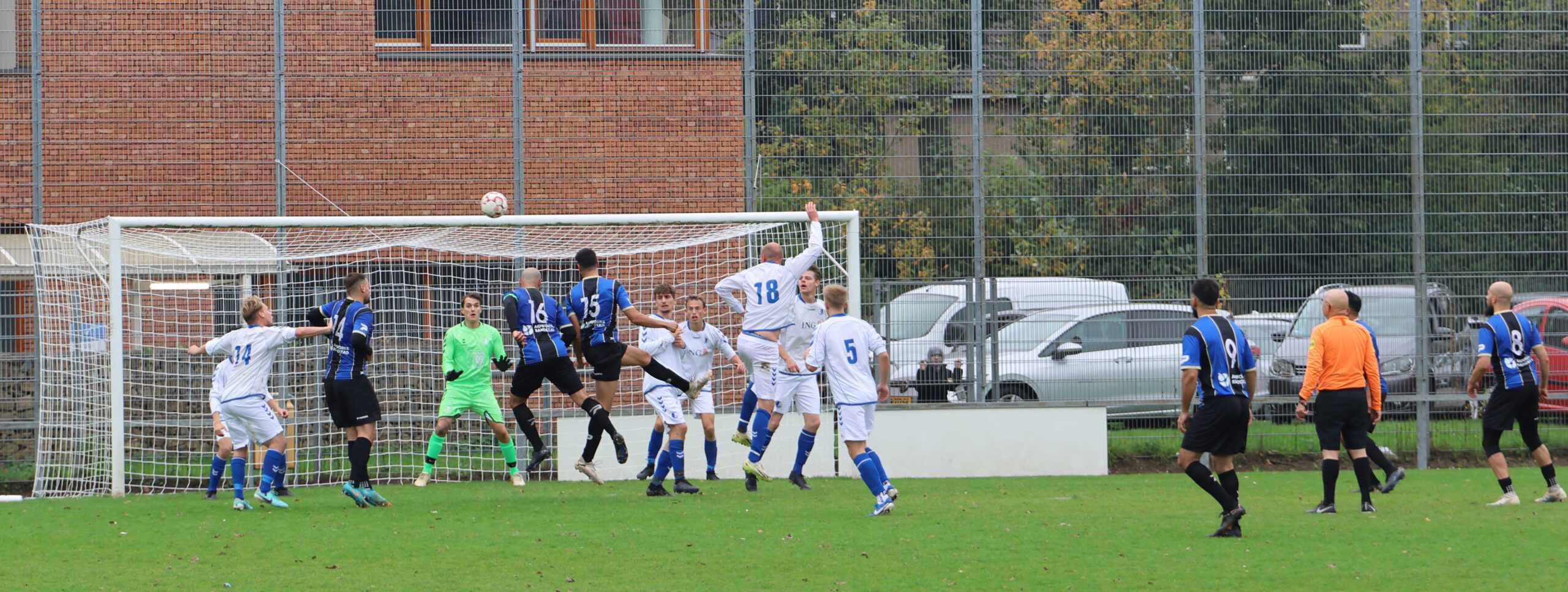de inlopende spits kon niet richting goal koppen. Loosduinen moest blijven opletten, want even later kreeg Esdo weer een kans, maar de bal werd van dichtbij hoog overgeschoten.