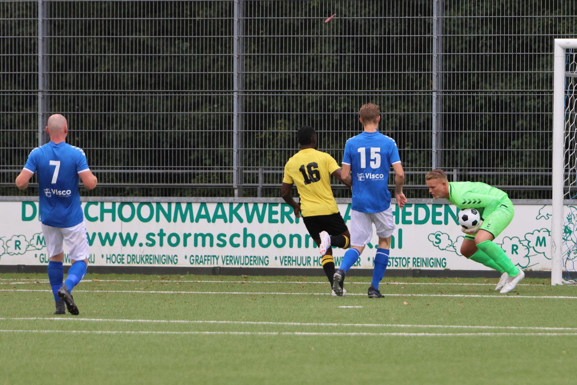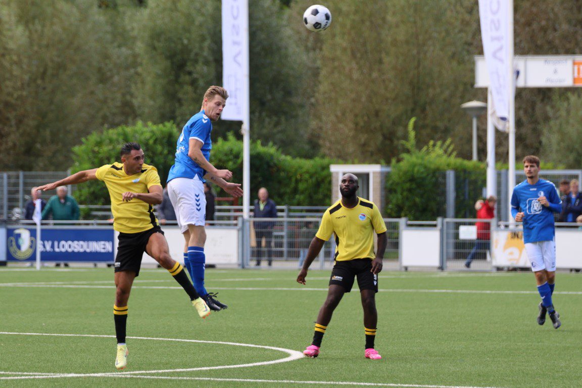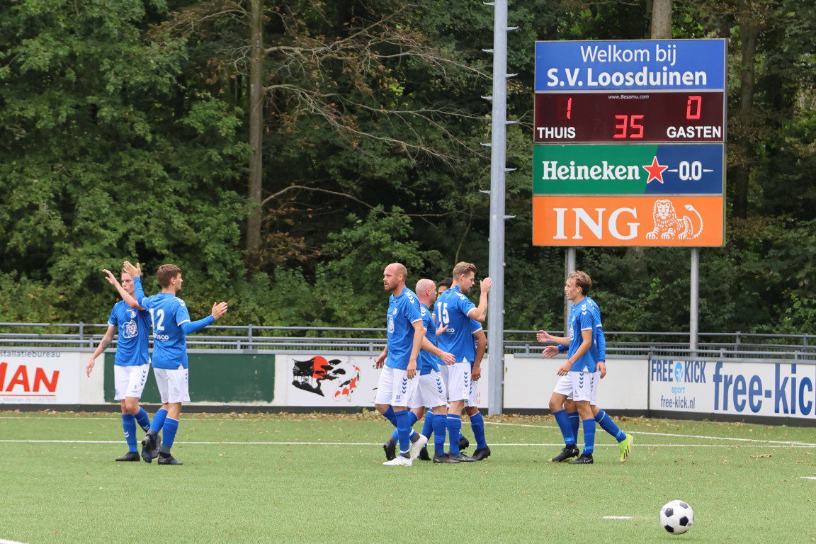 Het schot leek houdbaar voor de keeper, maar die bal ging er in en Loosduinen kwam dan toch op 1-0 voorsprong. Verder gebeurde er niet niet veel meer in de eerste helft als scheidsrechter Frikken fluit voor rust.
