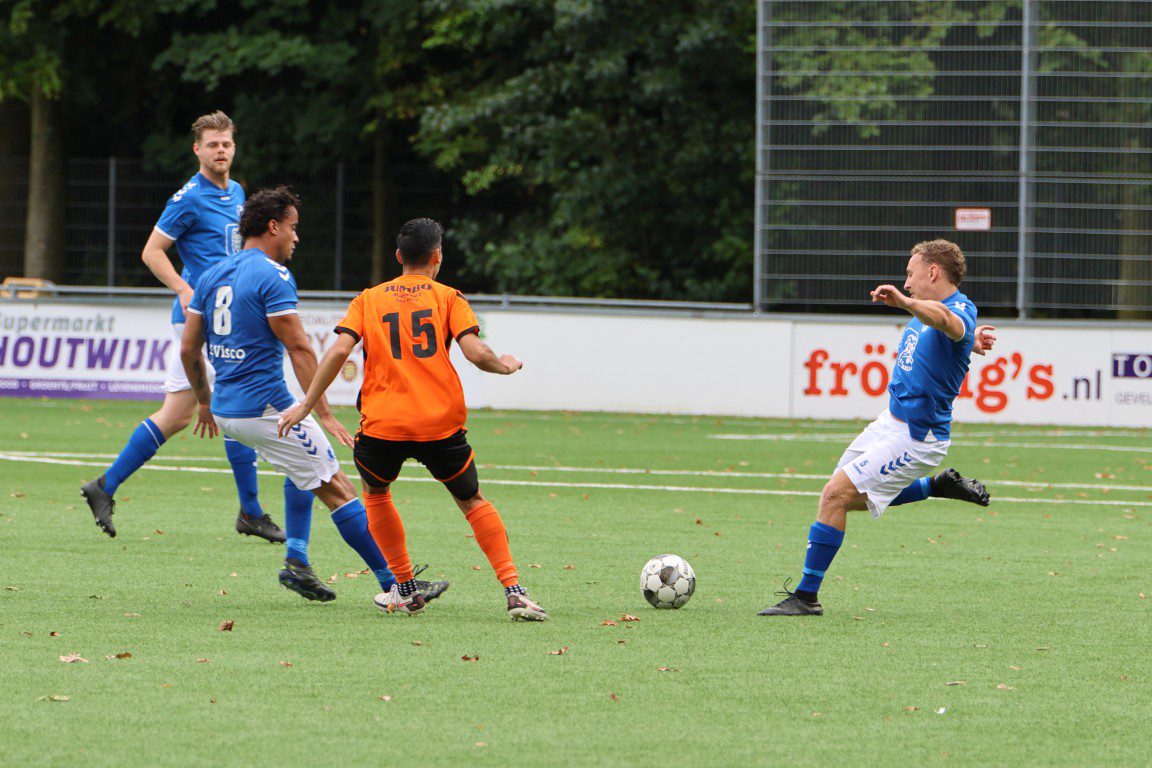 Na de nederlaag van vorige week tegen WFB (1-3) en daarmee de uitschakeling voor de beker stond vandaag de laatste bekerwedstrijd tegen Houtwijk op het programma. Dit was toevallig ook de tegenstander in de nederlaagserie van twee weken daarvoor. De uitslag in die avondwedstrijd was een afgetekende 5-0 voor de blauw witten. Dus een kleine onderschatting lag op de loer. Met de terugkeer van Erdi, Peter en keeper Finn is de selectie na de vakantie nog niet volledig compleet dus het was even afwachten met welke opstelling en met welk strijdplan trainer Remco de Graaf zou beginnen.