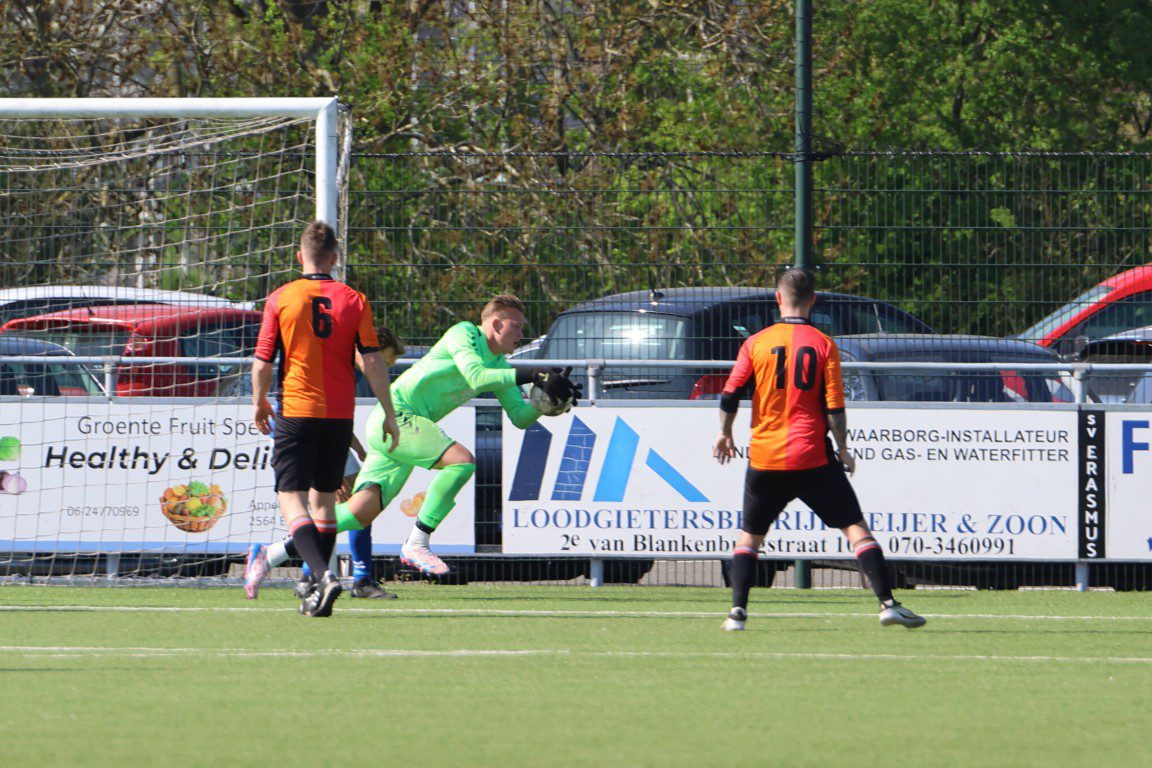Erasmus werd vervolgens gevaarlijk, maar door geklungel voor het doel wisten zij niet te scoren. Aan Loosduinse kant volgde een tweede wissel: Joeri Taal werd vervangen door Justin Oosterveer. In de laatste minuut kreeg Bart Ruwaard nog een grote kans, maar deze werd gemist.