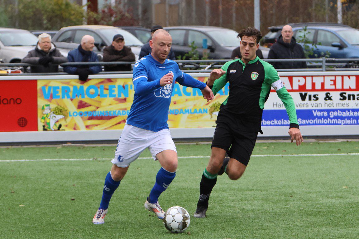 Na 7 minuten was het dan toch verdediger Dean van Velzen die Loosduinen uit een corner knap binnen kopte en zo de 0-1 op het scorebord zette.