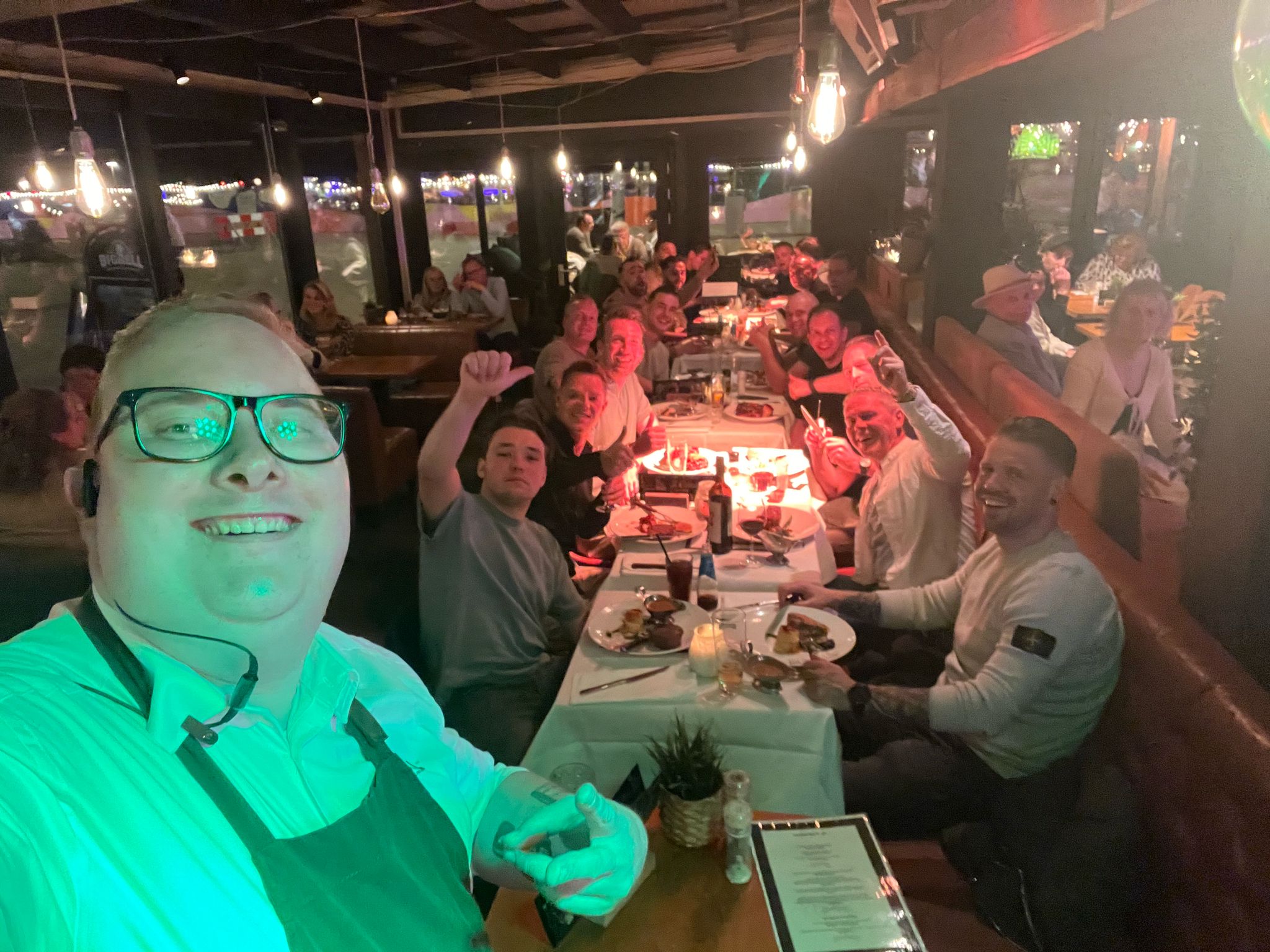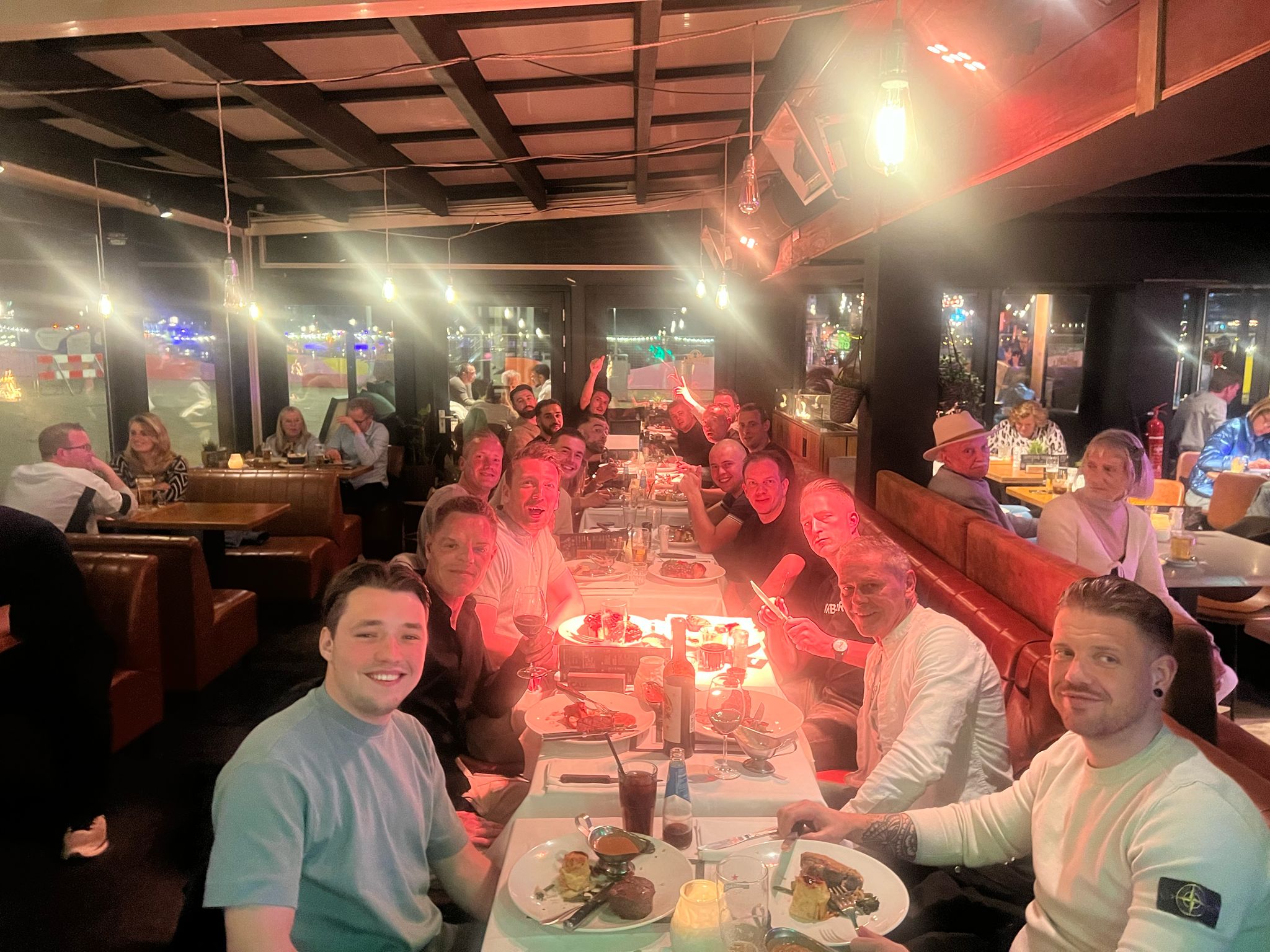 In de avond was er een etentje gepland en dat is toch lekker na zo’n winstpartij. Iets verder na afloop werden de nog overgebleven speler getrakteerd op een bezoek van Haags icoon Tom Beugelsdijk. Vooral Rutger had zijn spanning niet onder controle en was heel enthousiast op de foto.