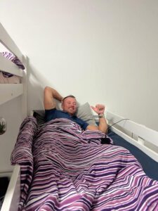 Het nachtleven werd dus weer op zijn kop gezet alleen bij terugkomst kwamen wij erachter dat er dus wat bedden afgehaald waren. Een (rot) streek die niet iedereen kon waarderen dus dat er weer weinig uurtjes slaap gepakt zijn zegt weer alles.
