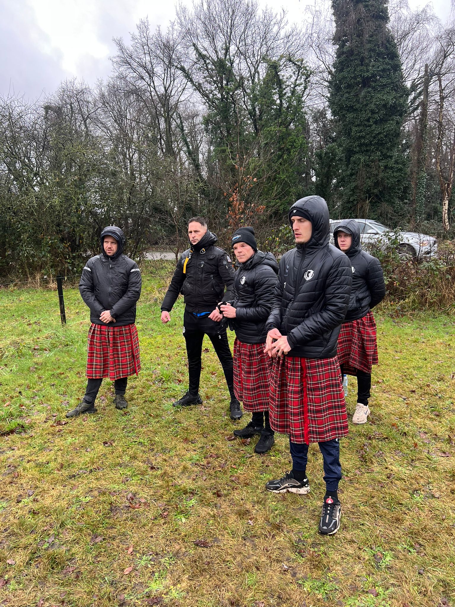 De ochtend viel zwaar in huize Duffel. De eerste avond had zijn sporen nagelaten en één voor één druppelen de spelers de eetzaal binnen. Voor een groep volwassen mannen hoef je geen regels te maken. Eén eis was er wel. We ontbijten gezamenlijk. Op het mooie tijdstip van 10.00 uur werd iedereen aan tafel verwacht. Iets wat natuurlijk lukt, met of zonder hulp. Na het ontbijt konden we nog even snel omkleden want om 12.00 uur werden wij bij het Ford van Stabroek in Stabroek verwacht voor het spelen van Highland games.