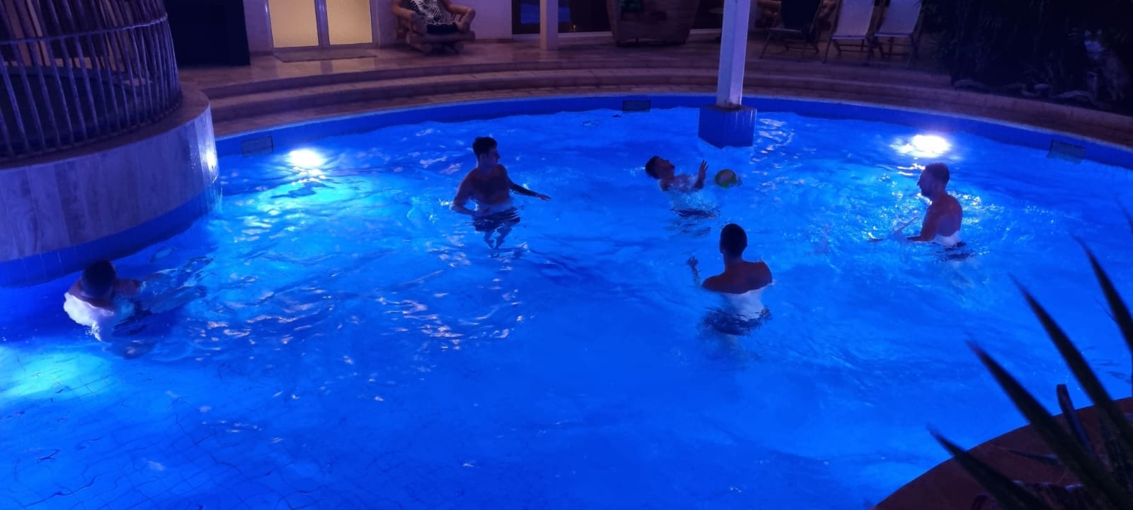 De middag/ avond werd voortgezet in de villa waar we na de lunch een quiz kregen voorgeschoteld van quizmaster Mella. Ook hier ontspon zich weer een spannende strijd tussen het team en met terechte winnaars Fernando en Pieter (Ferpie) werd de quiz afgesloten. Na de quiz konden we nog discozwemmen, pokeren of Maccen voordat we weer vroeg ons mandje opzochten. Morgen weer een vol programma. Lekker uitslapen, we mogen 2 speciale gasten begroeten om daarna een escape box (bom) te ontmantelen.